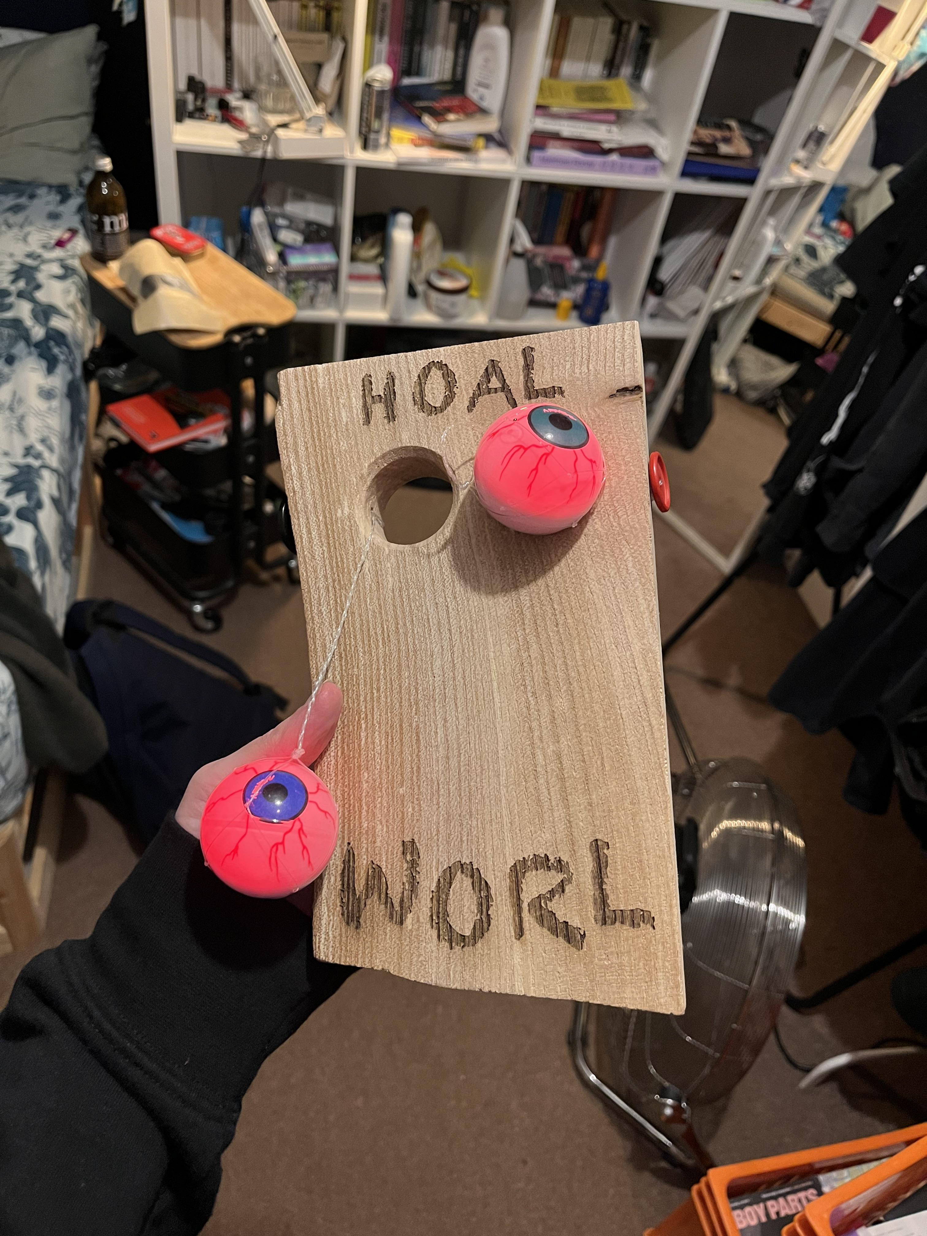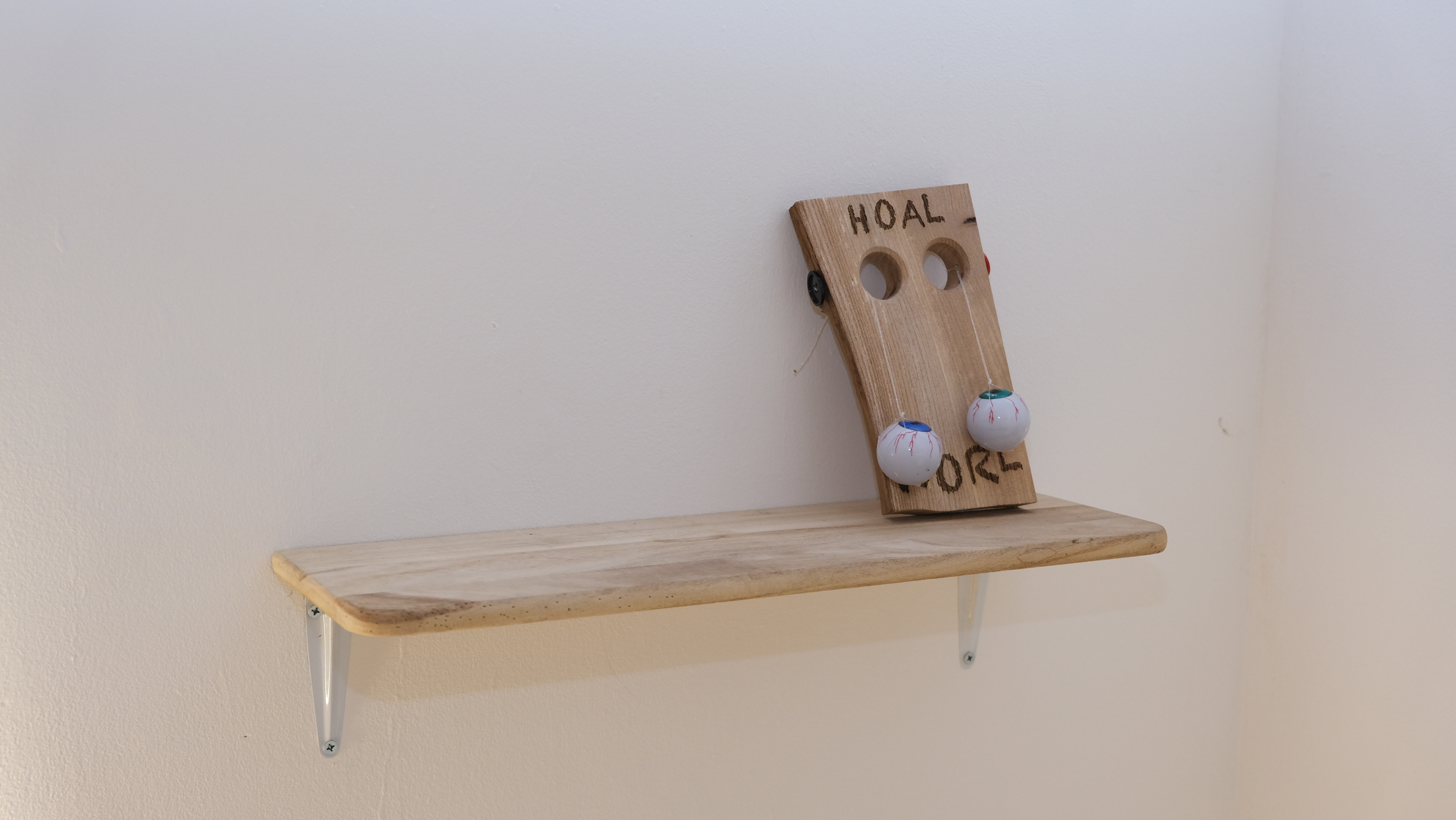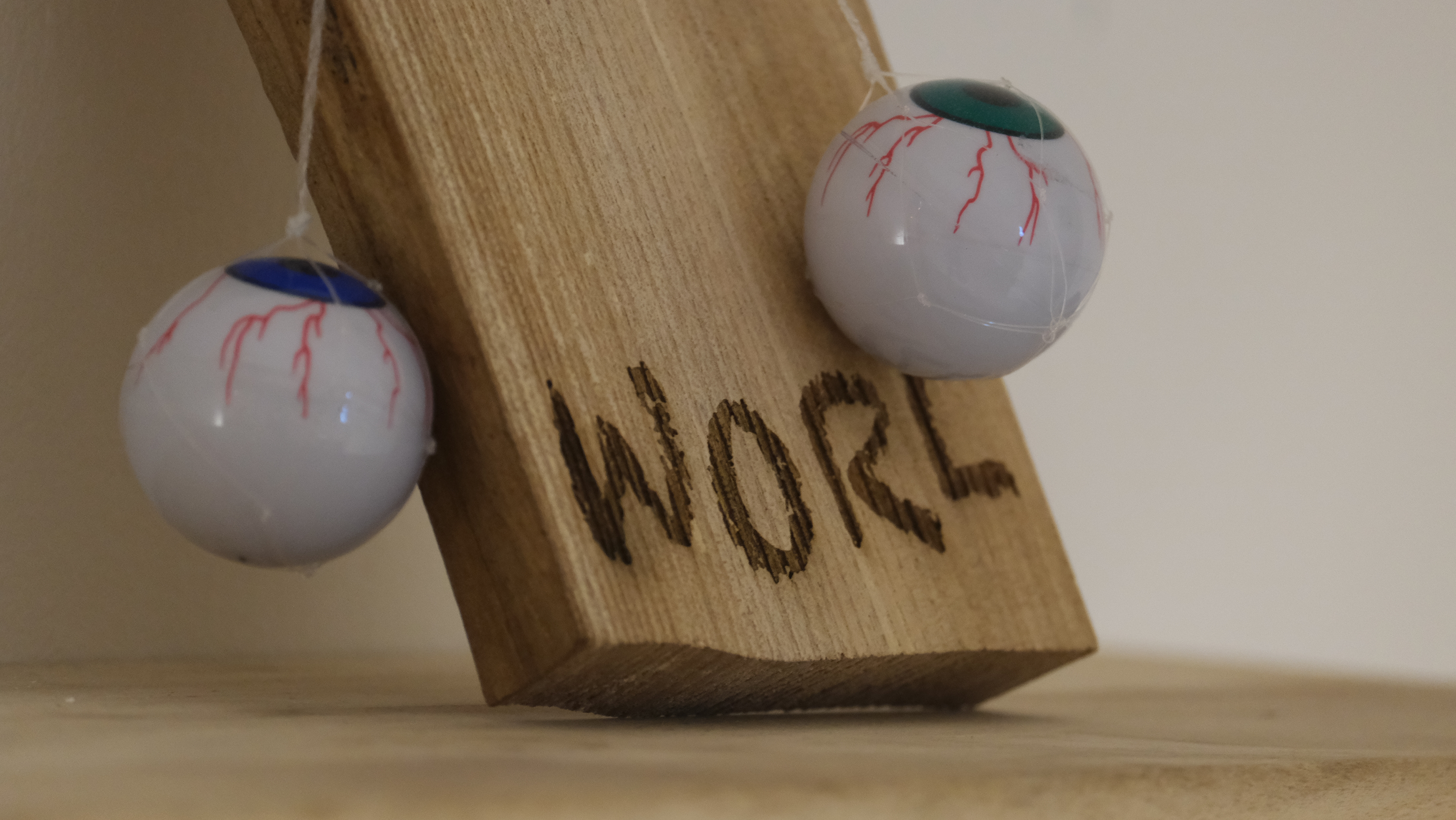 Found wood, buttons, fishing wire, light-up glide ball eyes Exhibited as part of Lewisham Illuminations at SET Lewisham, thank you to Charlie and Rhian for organising!